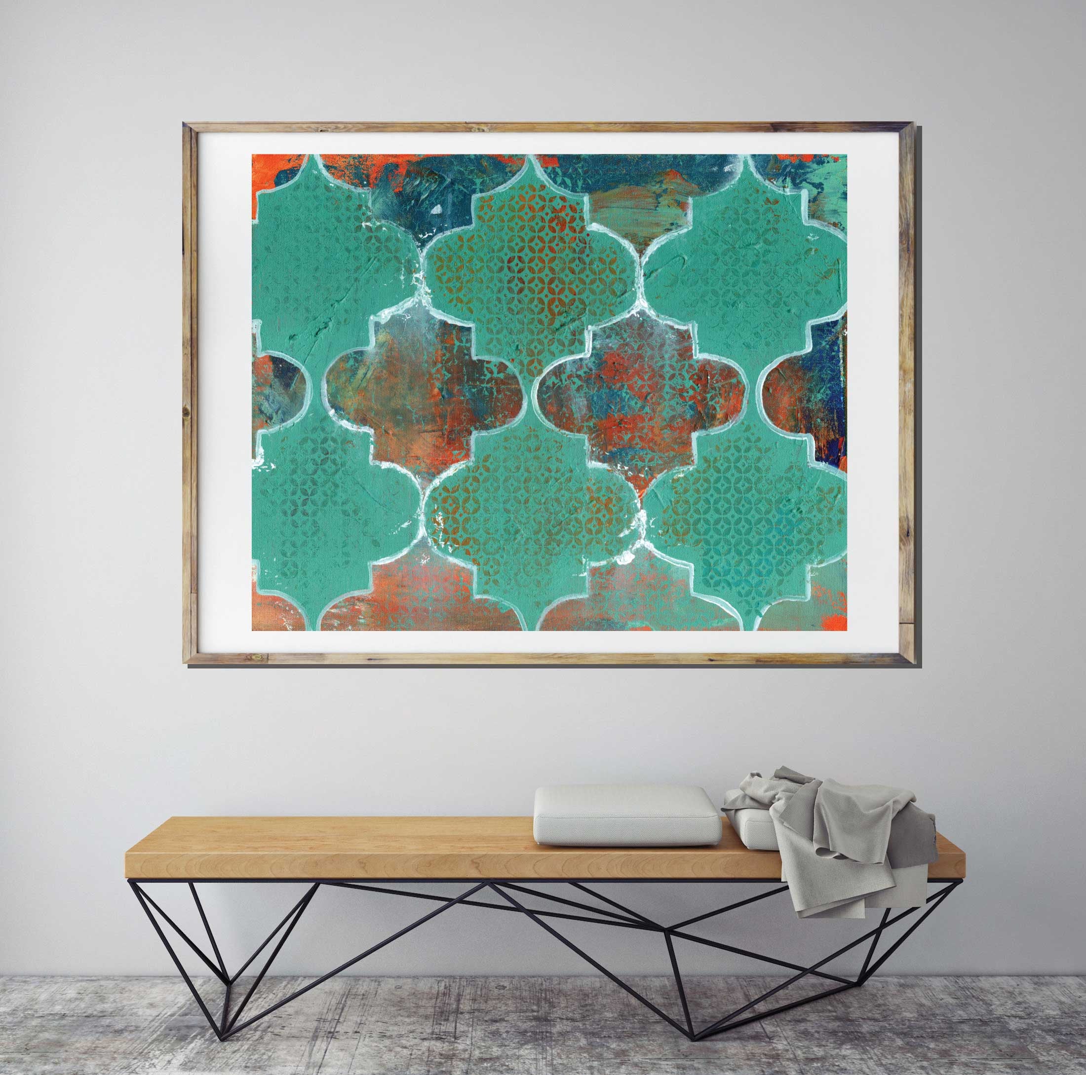 LATTICE is a giclee art print of a modern abstract original painting. Repeated geometric lattice work layered abstractly creates this beautiful and colorful modern art print. This print will bring a classic sophistication with a modern flair to any interior.