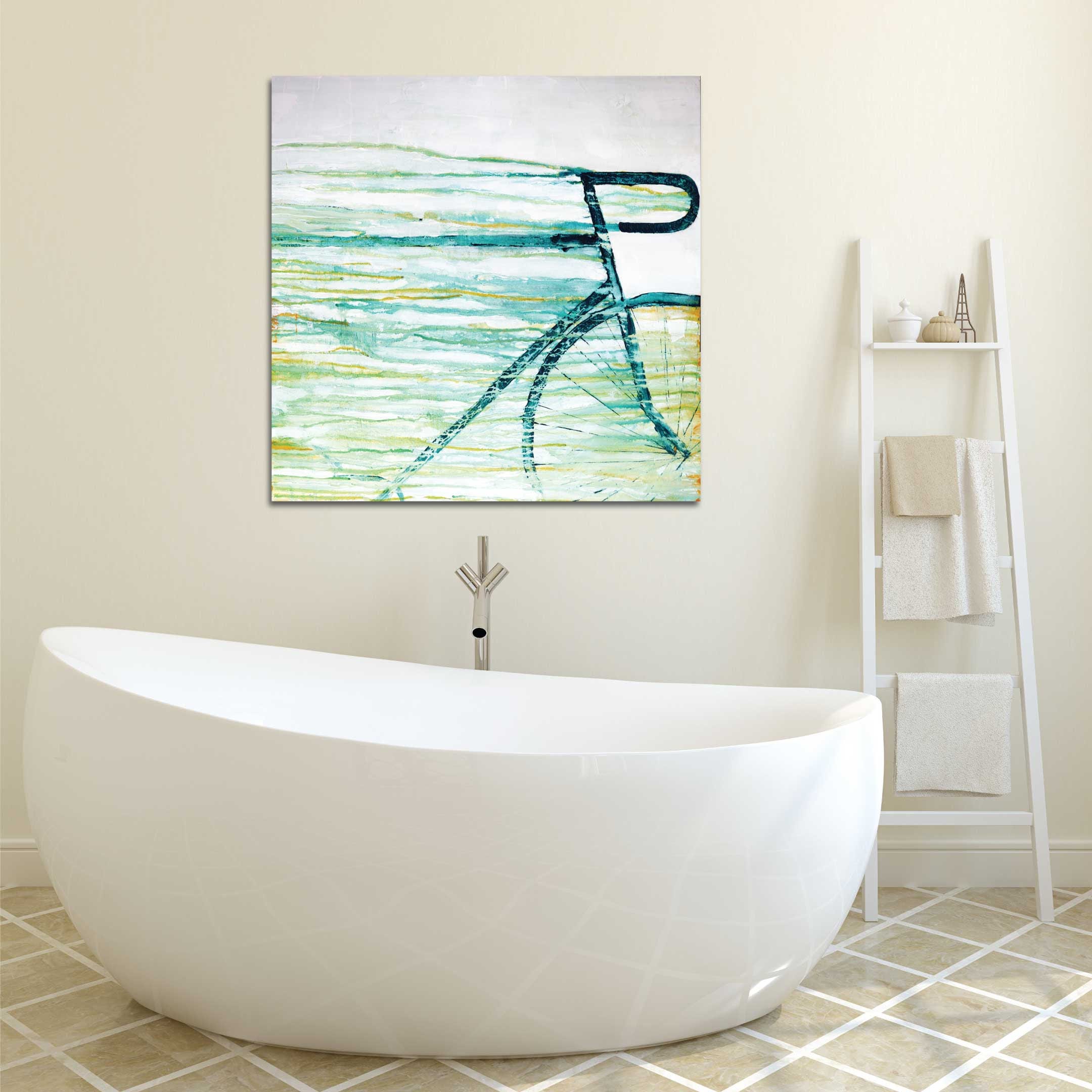 "Speed" is an original acrylic abstract painting showing a bicycle speeding and cutting through the air. This canvas is ideal for any bike fan, especially one with a modern and contemporary interior. I love this image, it's like the bike is slicing through the air creating beautiful blues, yellows and white streams of light as it speeds past. Also available as a print.
